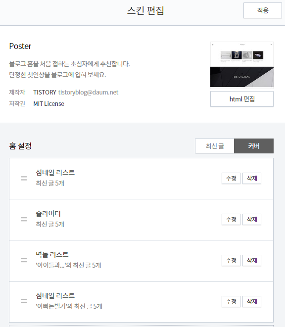 b. 티스토리 스킨 커버 아이템 종류