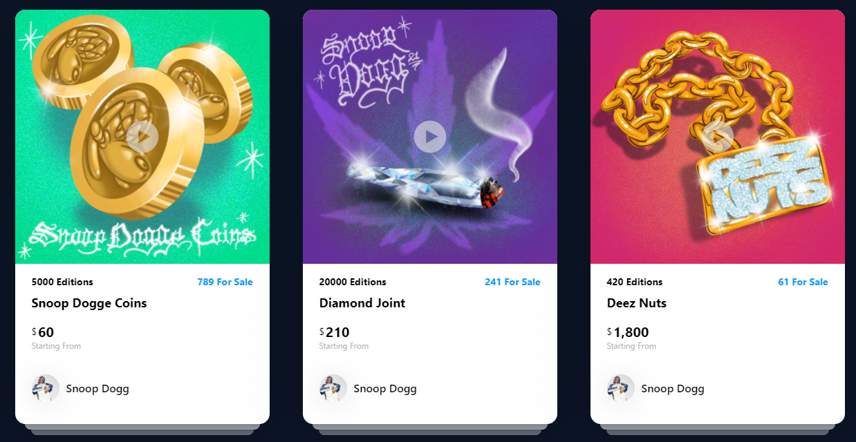 - Boy George, Snoop Dogg와 같은 아티스트와 협엽을 통한 NFT 발행