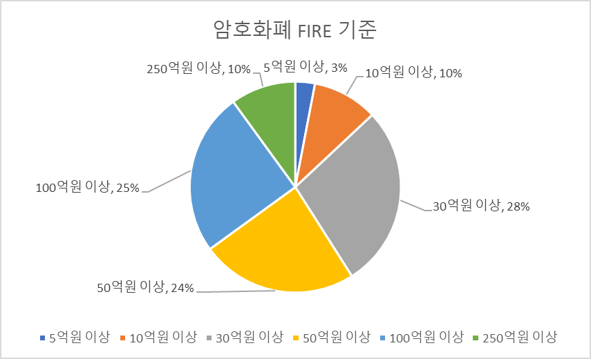 이번 여론조사를 통해서 집계된 암호화폐 투자자분들의 FIRE기준은 다음과 같습니다.