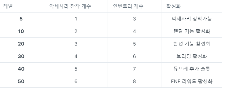 - 레벨업 : 레벨 50까지 가능하며 SKZ와 FNF를 이용해서 가능함.