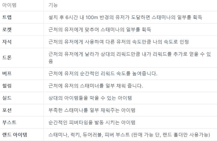 - 아이템은 유저 상호간 경쟁이나 협력을 도와주는 형태로 구성되어 있습니다.