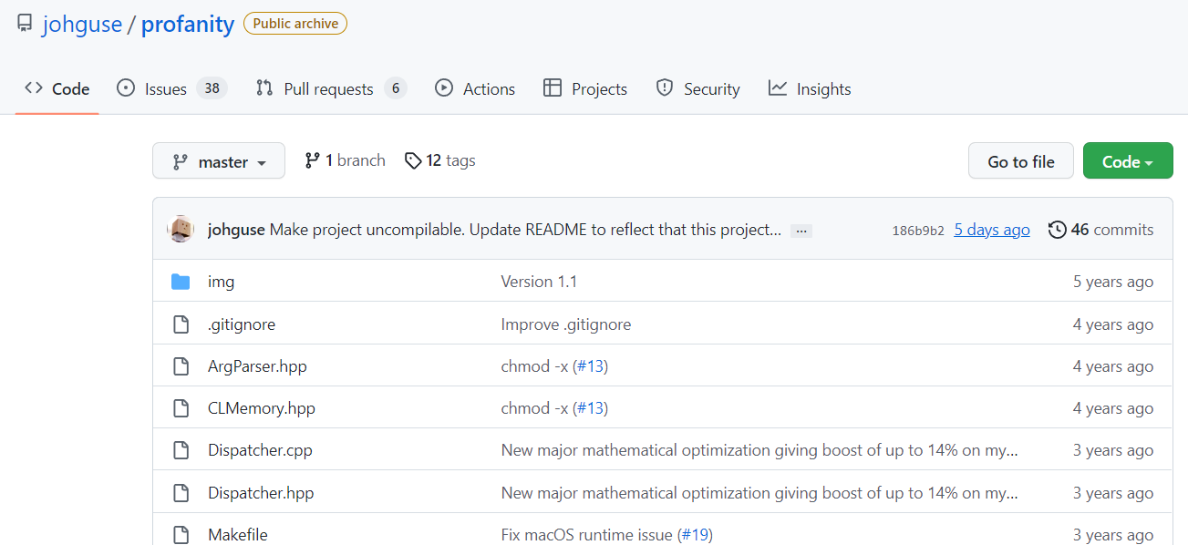 반대로 Profanity는 오픈소스로 개발자도 이미 수년전에 버린 프로젝트로 알려져있습니다. 현재는 개발자들이 Profanity로 생성된 주소들을 추적하고자 노력중이라고 알려져있는 상태입니다.