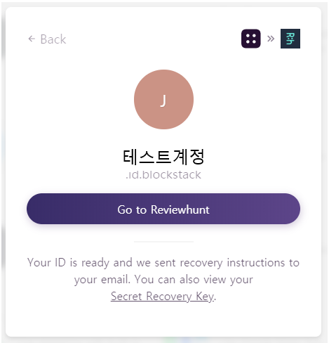 이것으로 블록스택 아이디 생성이 끝나고 리뷰헌트에서도 기초적인 질문을 하게 됩니다. 절차가 조금 길게 느껴질 수 있지만, 포스팅을 통해 자세하게 설명을 드려서 그렇지, 일반적인 회원 가입절차와 크게 차이가 나지는 않습니다.