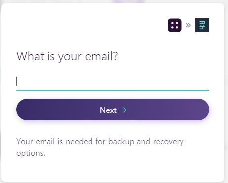 암호 입력후 블록스택 아이디가 입력이 완료되고 이메일 주소를 물어봅니다. 이 이메일 주소를 입력하셔야지 백업 정보가 전달이 됩니다.