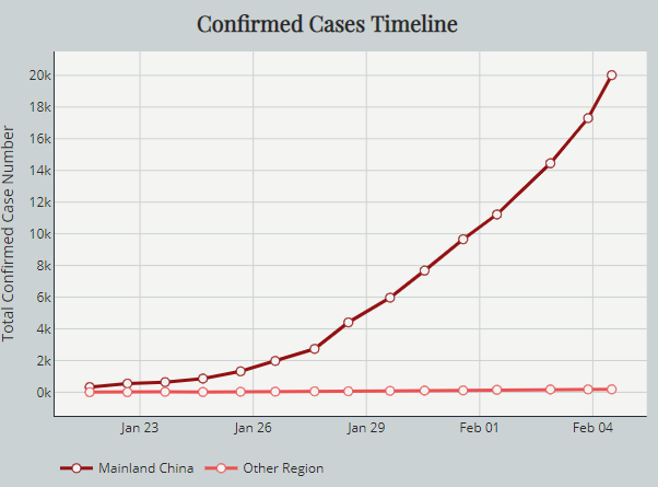현 포스팅 시점 확정된 확진자는 20,200명이며, 이중 중국에서 확진된 것이 20,014명, 해외에서 확진된 경우는 186명입니다.