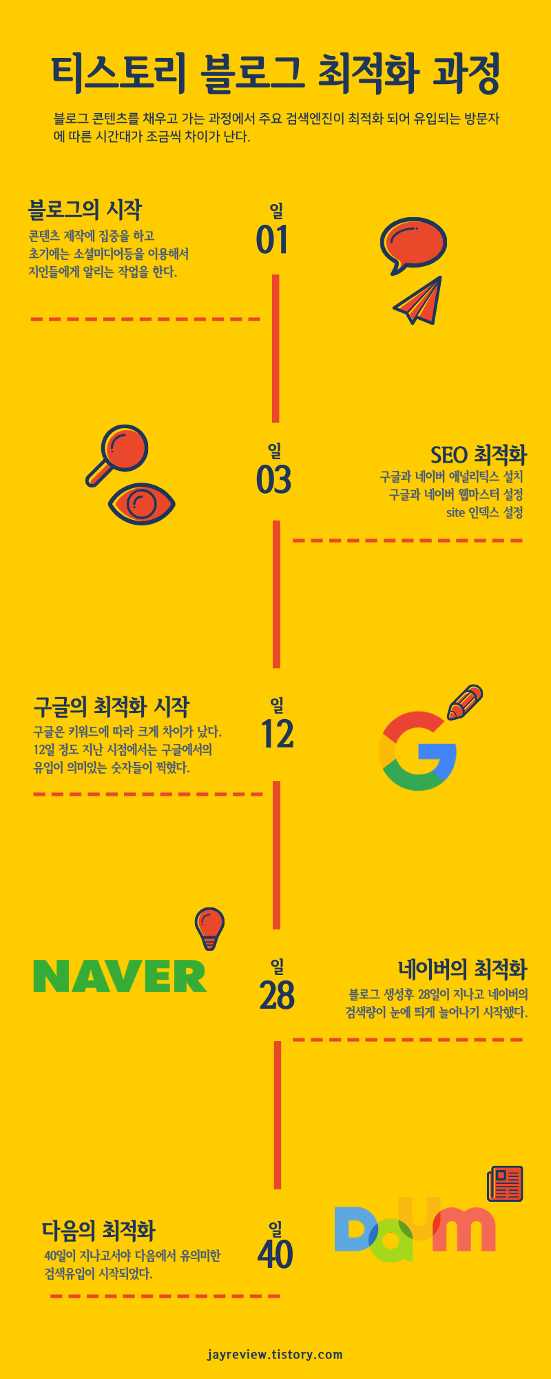 결론적으로는 검색엔진에서의 의미있는 유입을 보기 위해서는 꾸준하게 최소한 40일 정도의 블로그 활동은 필요하다는 것으로 볼 수 있습니다. 이것은 다른 블로그를 운영하시는 분들의 이야기를 들어보면 비슷하게 언급들을 하시며 필자도 컨펌을 할 수 있는 내용입니다.