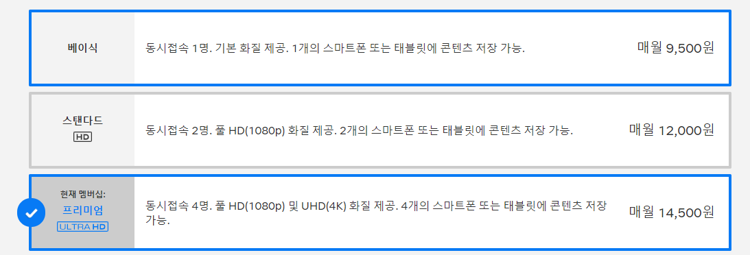 - 4명이 UHD로 볼 수 있는 제일 고급 플랜을 계속 사용할 수 있다.